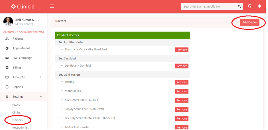 Primary account holder can add as many resident doctors and visiting doctors with no additional charges in one account. Separate User login gets created for each of the Resident doctors with limited access as defined by the primary doctor. Resident doctor can login into their Clinicia account by entering email / mobile no. which is given by main doctor at the time of creating User account.